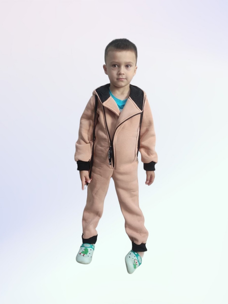 Комбинезон с капюшоном, с открытыми ножками, застёжка на молнии. Капюшон на подкладке, декорирован шнурком.