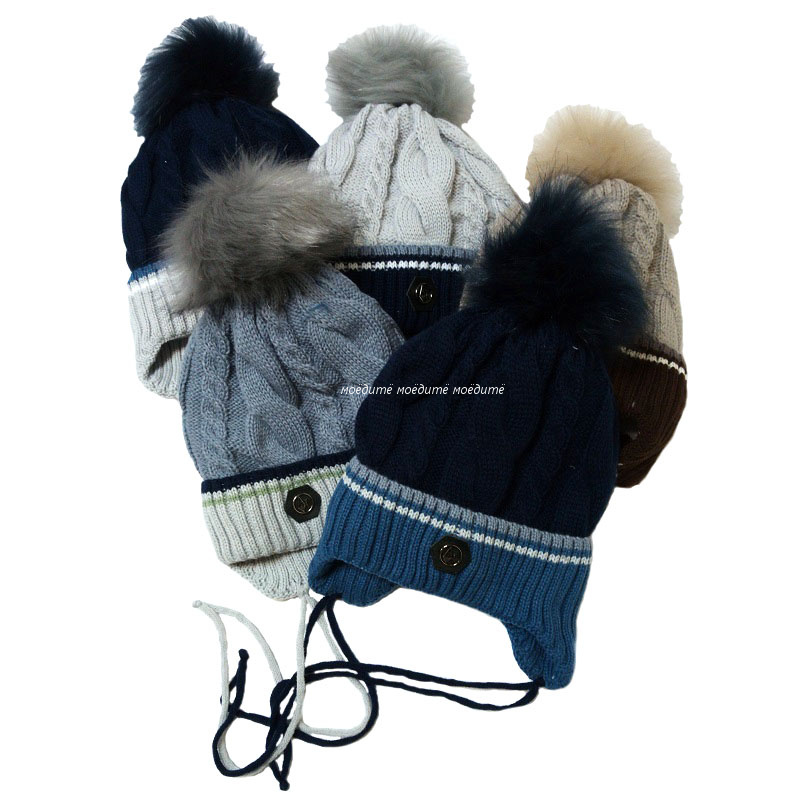 В упаковке 5 штук одного размера и вида, разного цвета. Шапочка вязаная с завязками, с помпончиком из меха, на подкладке из велсофта. Очень тёплая. Размер шапочек на 4-7 лет.