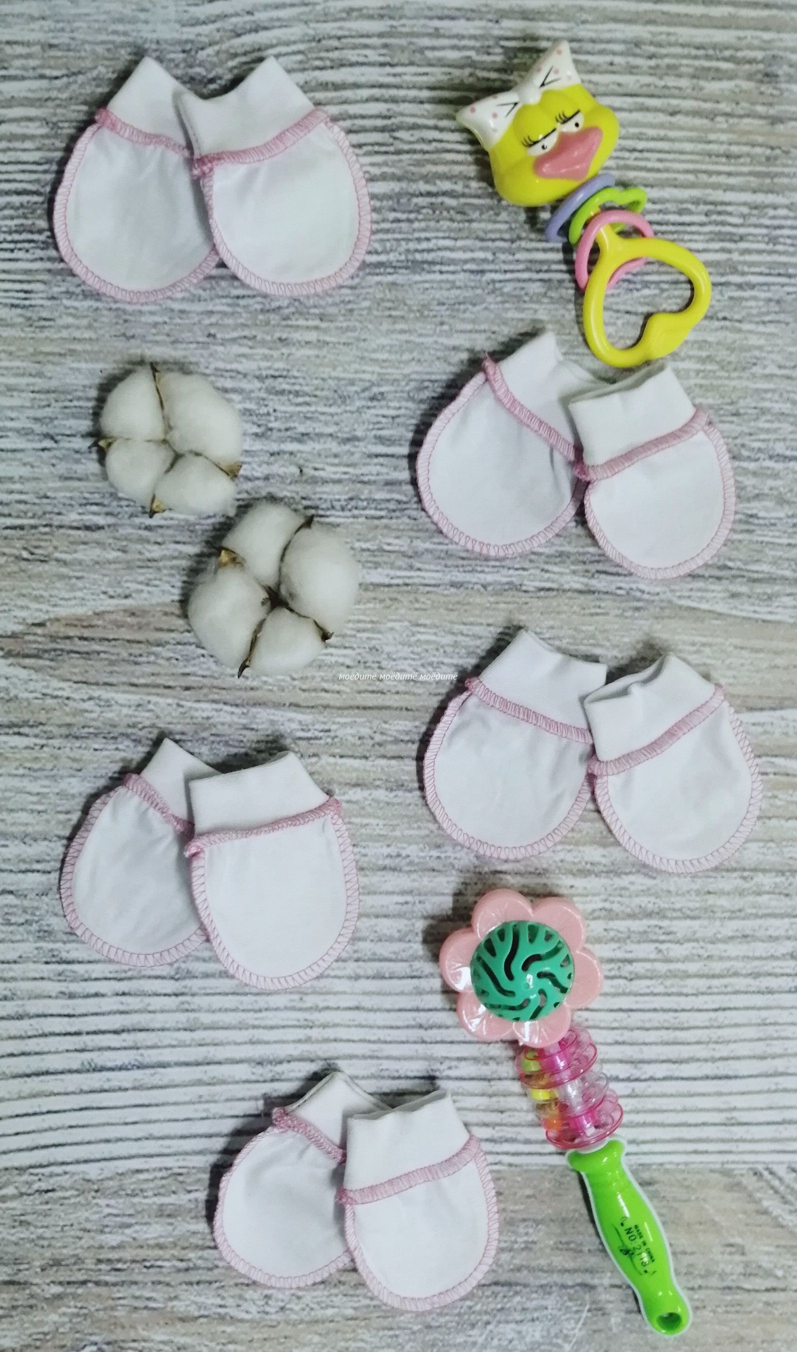 "МоёДитё" царапки кулирка белые с розовым ЦК018 "Гардения"